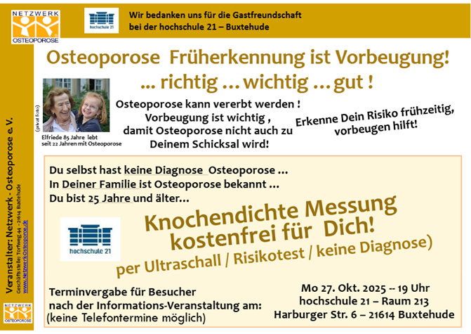 Event info: Monday, October 27, 2025 Buxtehude , Germany Organized by: Netzwerk Osteoporose Share event