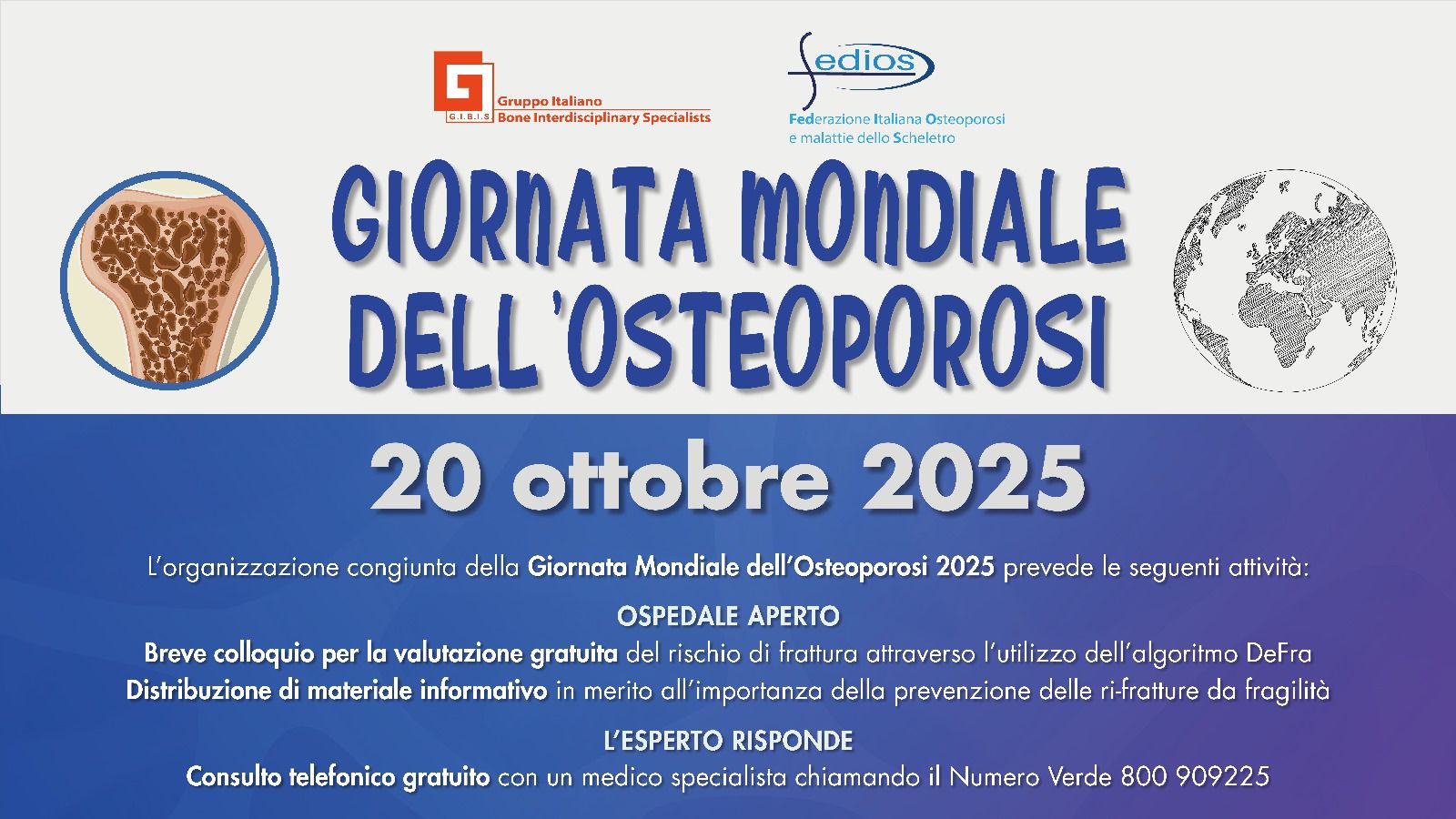 Hospitals in 12 regions of Italy will be participating in the World Osteoporosis Day campaign 'Ospedale Aperto'. Activities include: