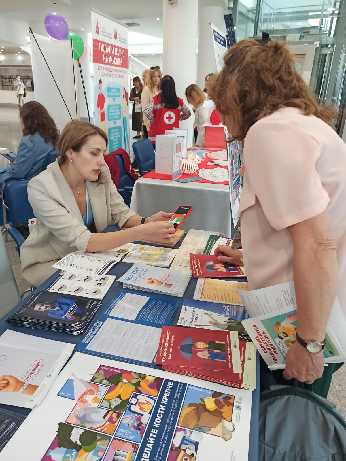 “Osteorus” volunteers and a representative of the Regional Treatment and Diagnostic center for Osteoporosis answered questions about osteoporosis prevention taught visitors to use FRAX. Booklets and leaflets about the disease, as well as information about exercising and dietary calcium and Vitamin D sources were distributed. Visitors could take IOF One-Minute Osteoporosis Risk Test.