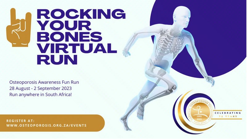 ROCKING YOUR BONES VIRTUAL RUN FOR OSTEOPOROSIS AWARENESS START DATE: Aug 28, 2023 END DATE: Sep 02, 2023 EVENT INFORMATION Closing date for registration: 27 August 2023 20h00 REGISTER HERE: https://kont.ly/9a7316aa Event info: Monday, August 28, 2023 Cape Town , South Africa Organized by: NOFSA Share event