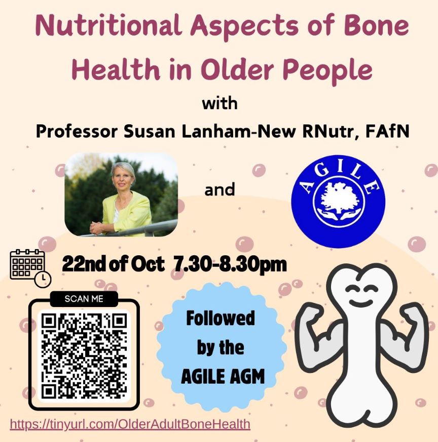As part of World Osteoporosis Day, Agile CSP is offering a FREE webinar on October 22nd, with Prof. Susan Lantham-New, Rnutr FAfN