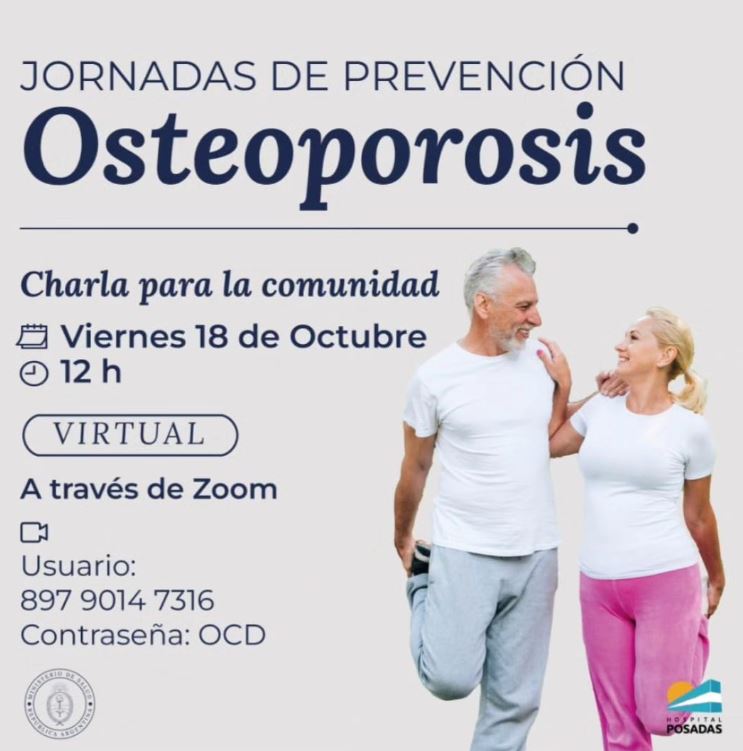 Event info: Friday, October 18, 2024 Buenos Aires , Argentina Virtual - ZOOM Organized by: Servicio de Endocrinología de Adultos del Hospital Posadas Jornada de Prevención de Osteoporosis Share event