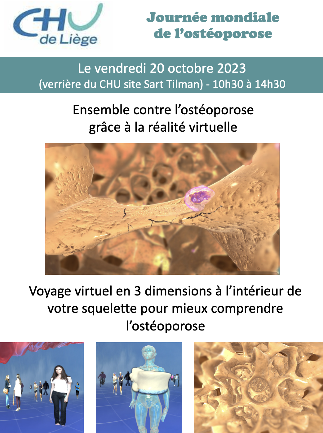 Journée de sensibilisation à l’ostéoporose ce vendredi 20 octobre de 10h30 à 14h30 dans la verrière du CHU Sart Tilman, à Liège.