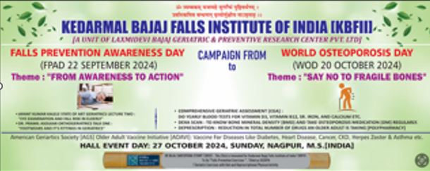 A town hall event was organized on 27 Oct 2024, Sunday, between 10 am and 1 pm . It featured 3 Scientific Talks and felicitations of Falls and Osteoporosis Enthusiasts. Around 100 older adults participated.