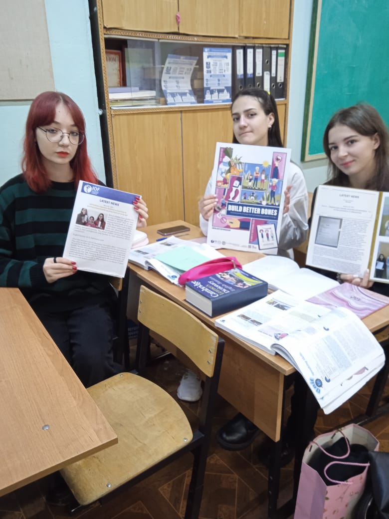 A number of teachers from Yaroslavl schools are actively involved in promoting nutrition culture and healthy lifestyle among schoolchildren and also contribute professionally to this process to make it interesting for the children to learn new topics, intersecting with the tasks of the educational process. For example, Irina Peneva, Olga Zabelina, teachers of English and Irina Verbetskaya (a drawing teacher) at School No. 4 regularly participate in educational events on osteoporosis prevention and use recommendations of IOF and “Osteorus”. This year, as well as last year, the children prepared video clips on the topic. Four years ago, Irina Peneva was the first to respond to the experiment of in-depth study of a foreign language in the thematic framework of bone health education. Together with Margarita Zakharova, a colleague from School No. 3, they developed methodological recommendations for a number of lessons. They sent the pedagogical developments to the Russian professional online journal “English at School”, so that other teachers could use them and encourage children to understand the importance of maintaining their bone health.