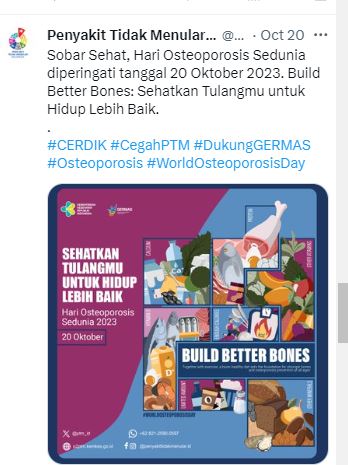 Republic of Indonesia (with 18 K followers) issued more than eight different posts to highlight the World Osteoporosis Day Build Better Bones messages
