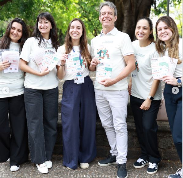 The event took place on Alameda Ezequiel Dias, with the participation of medical students who distributed educational materials and biscuits made from manioc starch—a symbol of bone fragility—with the message “avoid cracking bones”, as well as banners with impactful messages such as “Stop osteoporosis and speed up prevention.”