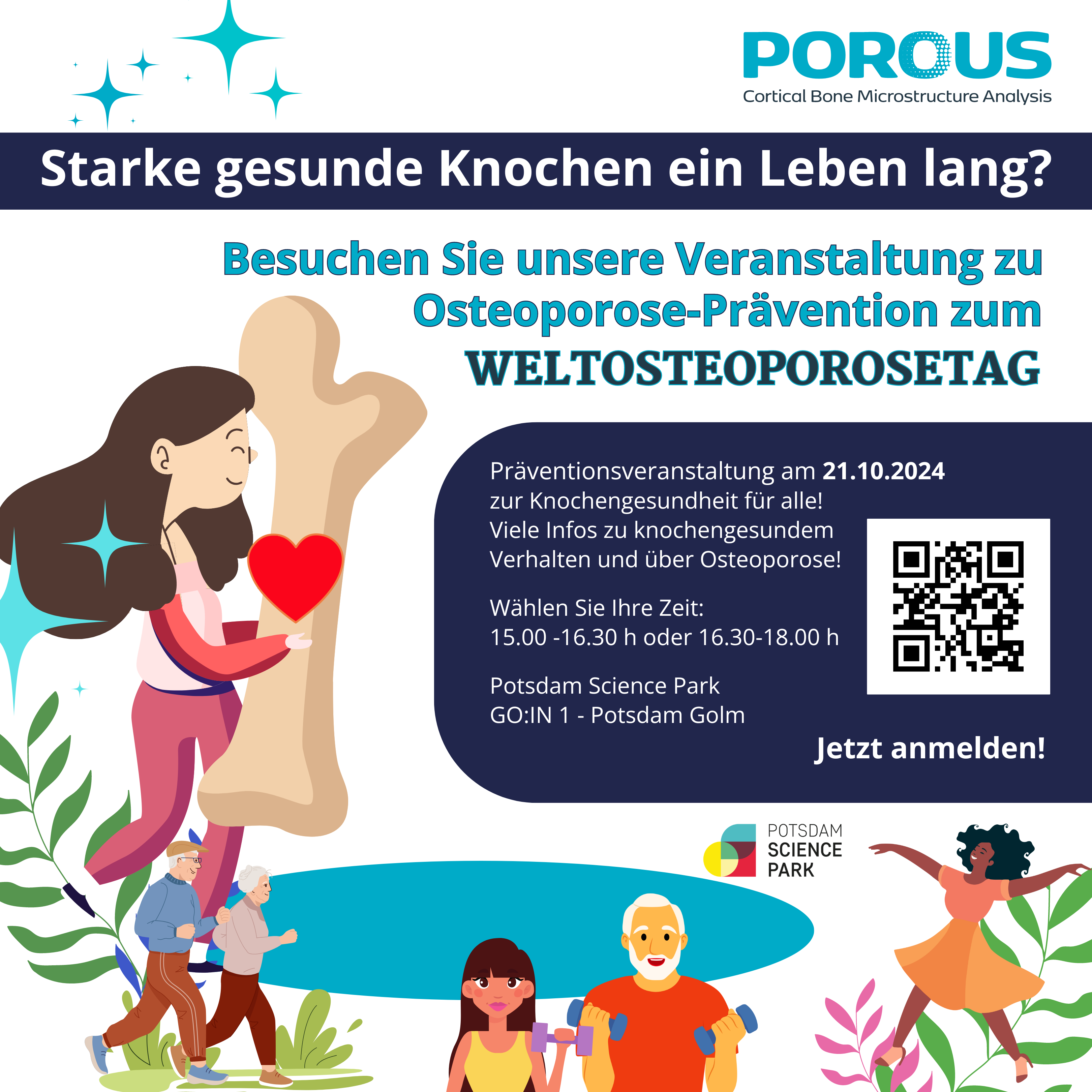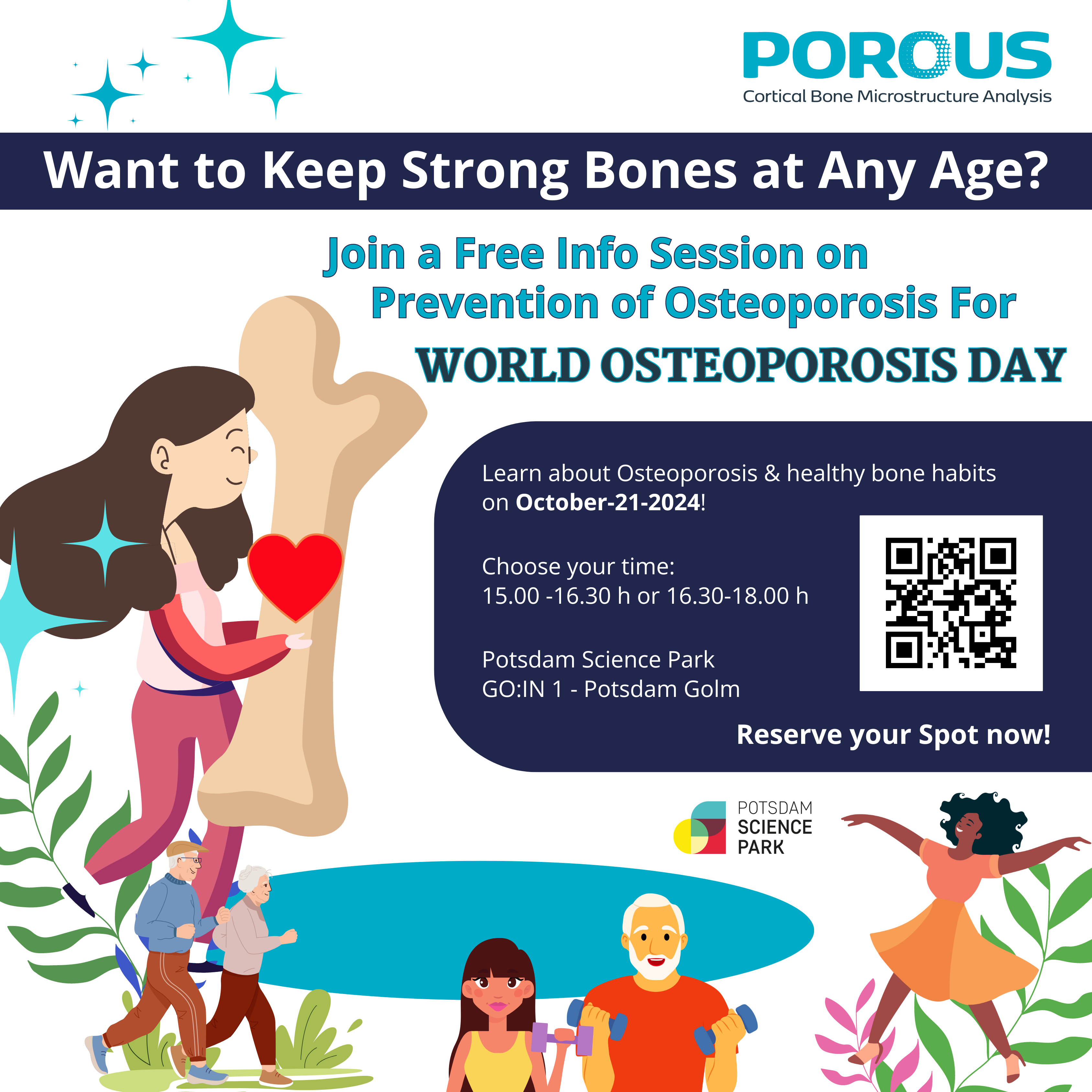At POROUS, we care deeply about the prevention of osteoporosis. Thus, we warmly invite you to join us on October 21, 2024, for our workshop in honour of World Osteoporosis Day.