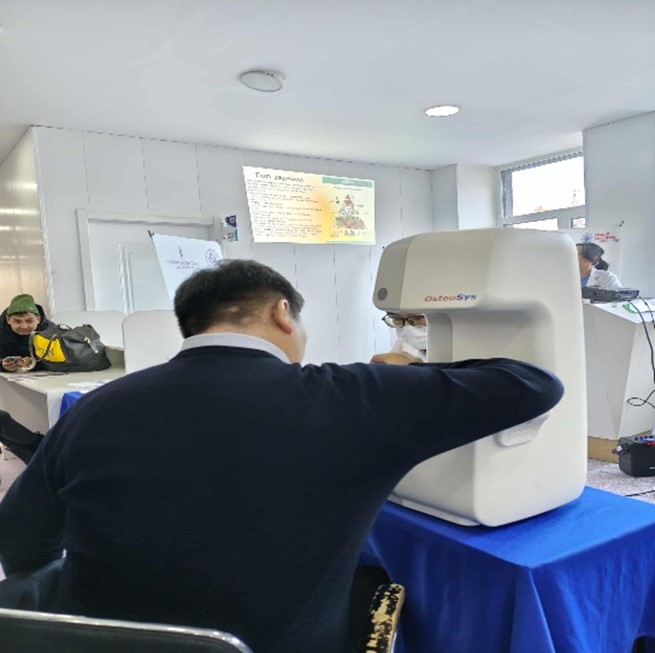 The Mongolian Naran Society for Osteoarthritis and Musculoskeletal Health, First Central Hospital of Mongolia and Graduate School, MNUMS evaluated the knowledge and risk factors of 100 ambulatory clients about osteoporosis. The International Osteoporosis Foundation's osteoporosis risk assessment and health improvement recommendations were translated from English to Mongolian and questionnaires were collected from outpatient clients.BMD measurements and consultations were done as well.