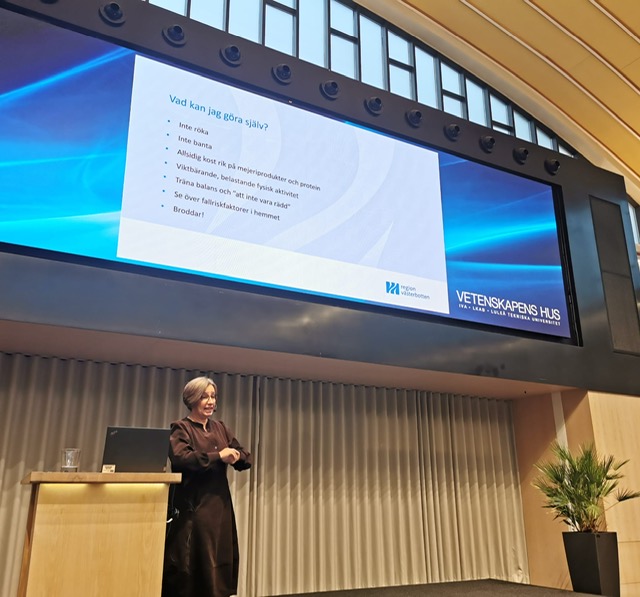 Under the title Bone health with the right drug treatment - for whom, what and when?, senior physician in internal medicine Anna Ramnemark from Umeå lectured. She discussed osteoporosis and gave insight into the benefits of the different drugs and how one should relate to the "package insert". She answered many medical questions from the audience.