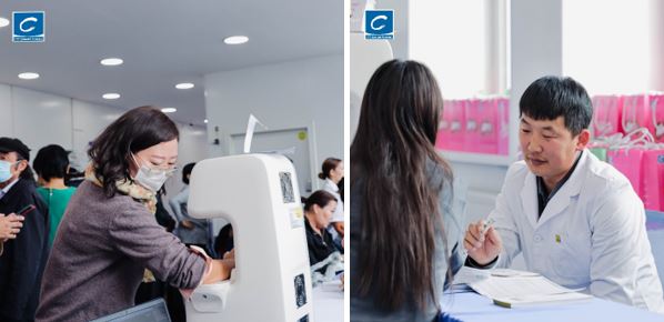 Image 5: Dr. Batmunkh Batsaikhan (Denk Pharma) are shown measuring BMD and consulting osteoporosis for participants of the event.